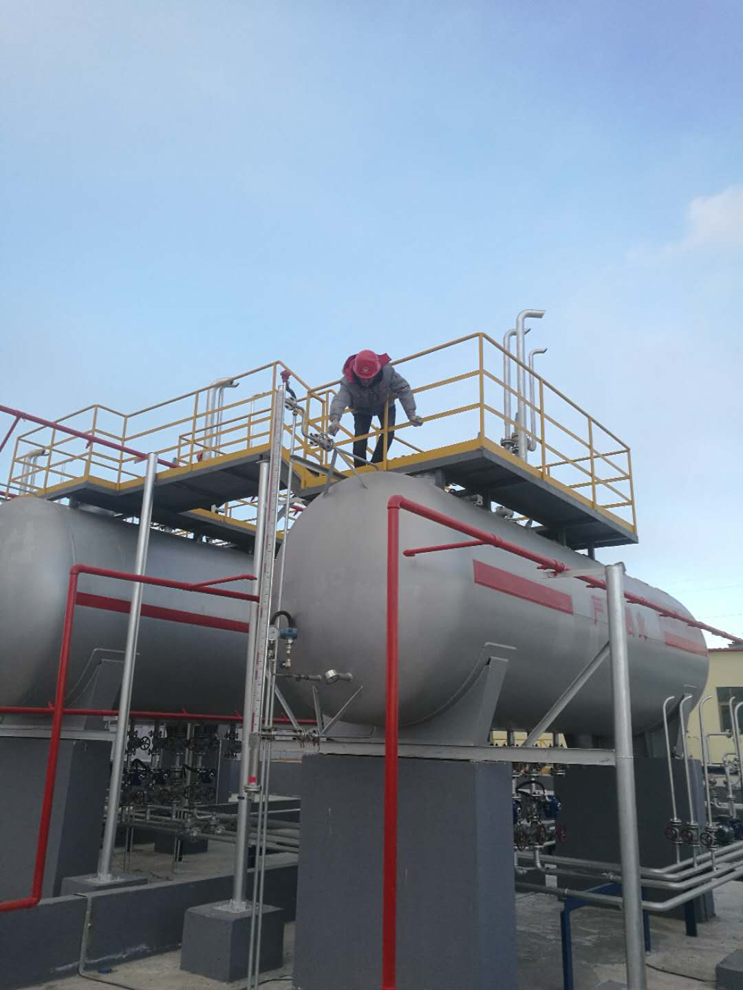 在經(jīng)過(guò)前期一系列的準(zhǔn)備工作之后,我公司于2018年12月6日組織武川縣清潔能源供應(yīng)示范基地LPG儲(chǔ)配站工藝管道以及液化氣儲(chǔ)氣罐整體的氮?dú)庵脫Q作業(yè)。置換當(dāng)天氣溫低至零下20攝氏度,現(xiàn)場(chǎng)人員在公司氮?dú)庵脫Q領(lǐng)導(dǎo)小組的指揮下,于11時(shí)正式開(kāi)始注氮作業(yè),各小組作業(yè)前首先對(duì)工藝條件進(jìn)行了檢查,在確定一切正常后,小組成員按計(jì)劃逐步實(shí)施,作業(yè)過(guò)程中流程清晰,作業(yè)人員操作嫻熟,指令上傳下達(dá)有序,后勤保障到位,置換工作井然有序,在歷時(shí)5小時(shí)后,管道內(nèi)氮?dú)鈮毫ι聊繕?biāo)值,氮?dú)庵脫Q工作順利完成。此次置換工作標(biāo)志著投產(chǎn)前工藝上最后一項(xiàng)準(zhǔn)備工作完成,向安全平穩(wěn)投產(chǎn)又邁進(jìn)一步,為L(zhǎng)PG儲(chǔ)配站的正式運(yùn)營(yíng)生產(chǎn)奠定了堅(jiān)實(shí)的基礎(chǔ)。