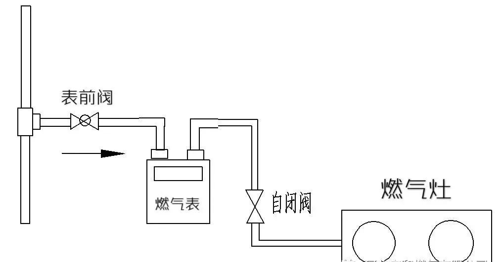 ◆閥門應(yīng)安裝在燃?xì)獗砗?,灶具前?br />